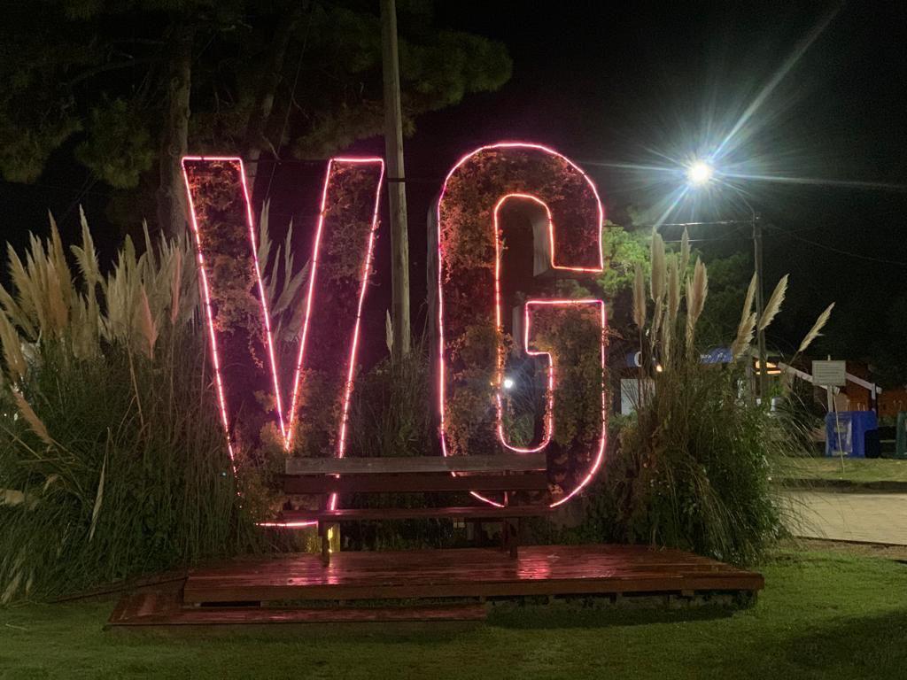 Por la noche y como parte del mensaje de concientización se iluminó de rojo la entrada norte de Villa Gesell en el adorno verde VG como parte de la campaña a nivel nacional.