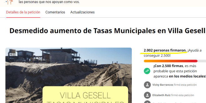 La petición que vecinos denominaron Desmedido aumento de Tasas Municipales en Villa Gesell, ya lleva acumuladas más de 2.000 firmas y van por más, mientras esperan la convocatoria de la comisión del HCD.