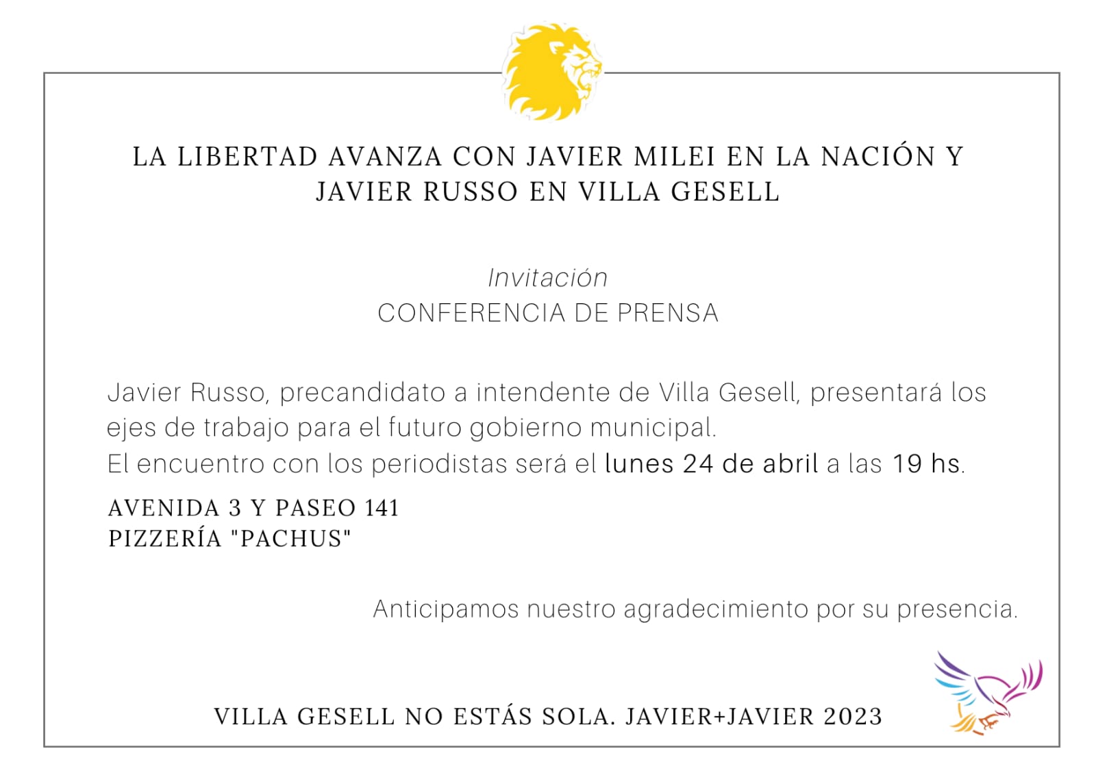 El encuentro con los vecinos y la prensa se llevará a cabo el próximo lunes 24 de abril a las 19 horas en la pizzería ubicada en Avenida 3 y Paseo 141 en Villa Gesell. «Vamos a hacer conocer a toda la comunidad los ejes de trabajo en los que estamos trabajando para lo que podría ser nuestra gestión de gobierno, si la gente nos acompaña con su voto», declaró a Por la 3 el precandidato a intendente Javier Russo. El encuentro, al que se convocó a la prensa local, es de acceso libre para vecinos y vecinas.