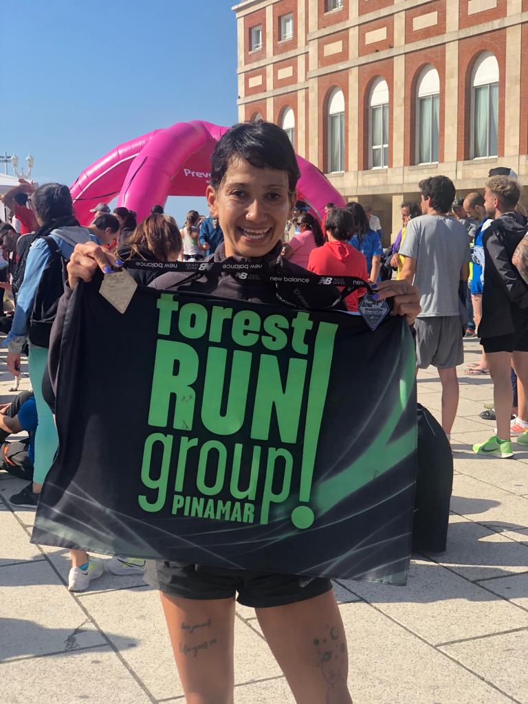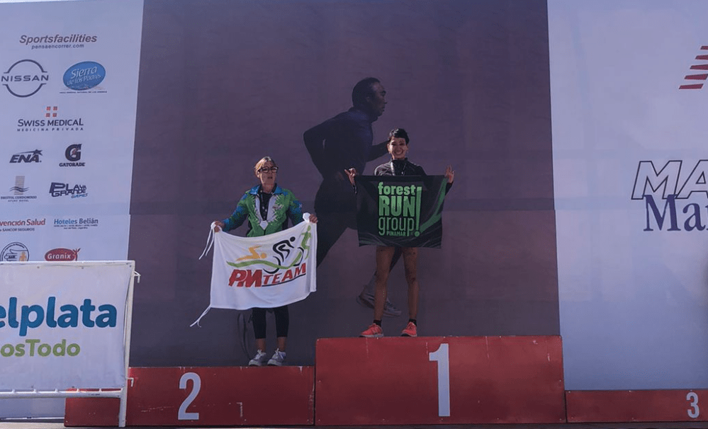 Entre la caída y la perseverancia, Cristina que es una docente de Gesell, ocupo el primer puesto del podio en la distancia de 21 Km en su categoría.