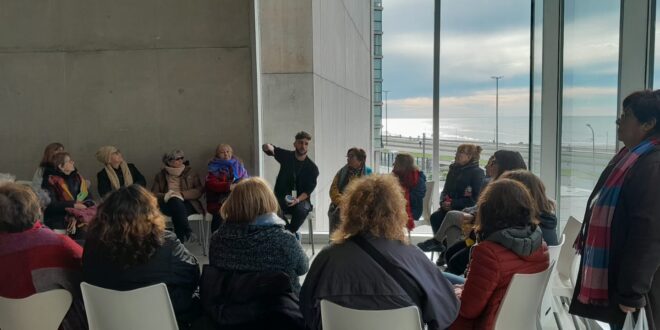 En el MAR, los abuelos asistieron a una charla instructiva sobre las características particulares del museo, a cargo de los jóvenes que oficiaron de anfitriones y pudieron disfrutar de la muestra: PREMIO ADQUISICION 8M; una colección de obras de artistas mujeres y LGBT+que busca revertir la desigualdad de género en la conformación de las colecciones de los museos públicos nacionales.