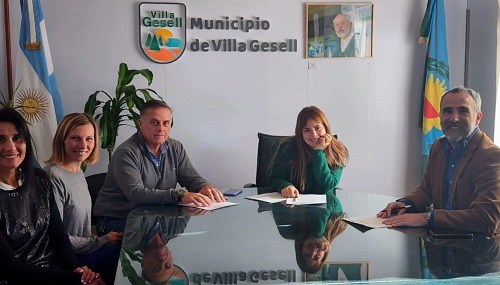 El presidente del Patronato de Liberados, Aníbal Hnatiuk firmó un convenio de colaboración junto al jefe de Gabinete del Municipio de Villa Gesell, Alberto Guglielmini y la secretaria de Géneros y Juventudes, Belén Falduti.