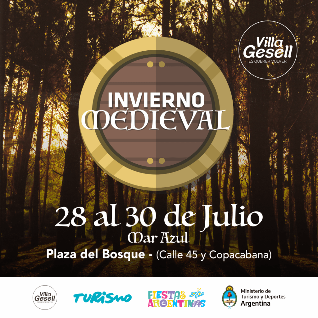 A partir del mediodía en la Plaza del Bosque de Mar Azul, el Invierno Medieval transcurrirá con espectáculos, gastronomía, puestos de diversos productos y las famosas luchas medievales. Calle 45 entre Punta del Este y Copacabana.