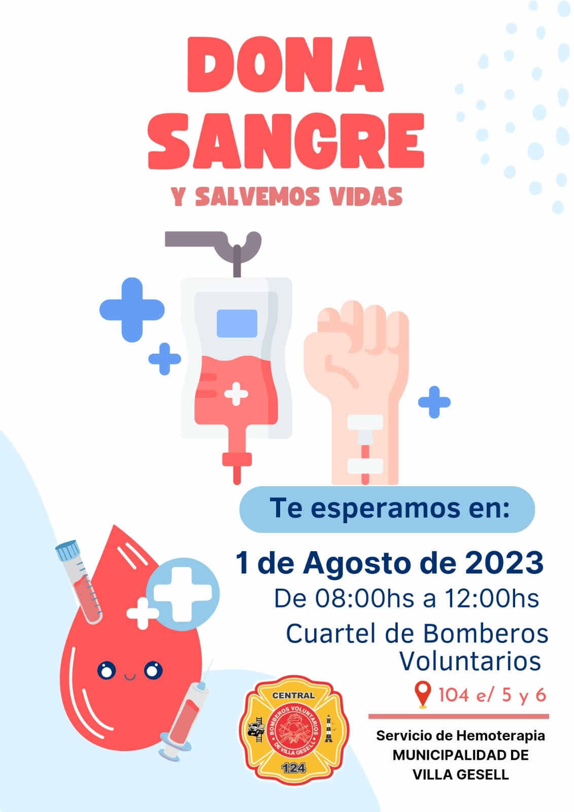 Porque donando sangre se puede salvar una vida una vez más el servicio de hemoterapia del Hospital de Villa Gesell realiza una campña de donación de sangre , el 1 de Agosto, en el cuartel de Bombero Paseo 104 entre 5 y 6 en el horario de 8 a 12.