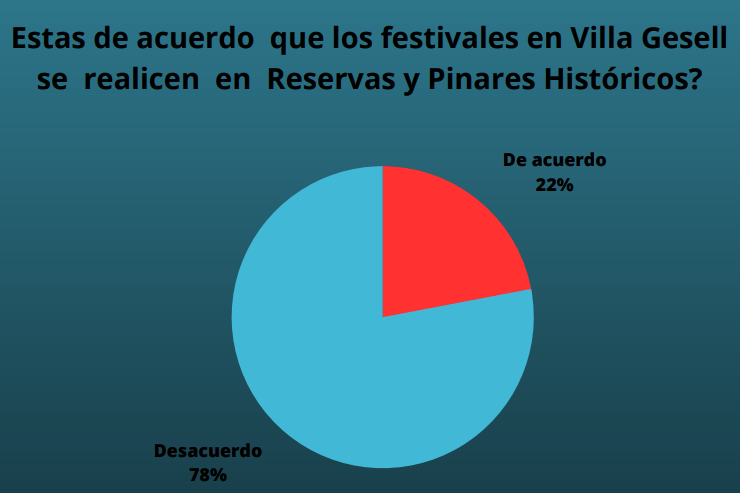Hace 3 días realizamos una encuesta en nuestra página de Facebook en donde consultamos a nuestros seguidores sobre el grado de acuerdo con la realización de eventos y festivales en Reservas y Pinares Históricos de Villa Gesell. Los resultados fueron contundentes y la cantidad de votantes muy alta, el 78% de los que contestaron concordó que no están de acuerdo con la realización de estos encuentros en espacios naturales protegidos, que consideran que podrían hacerse en otros espacios.