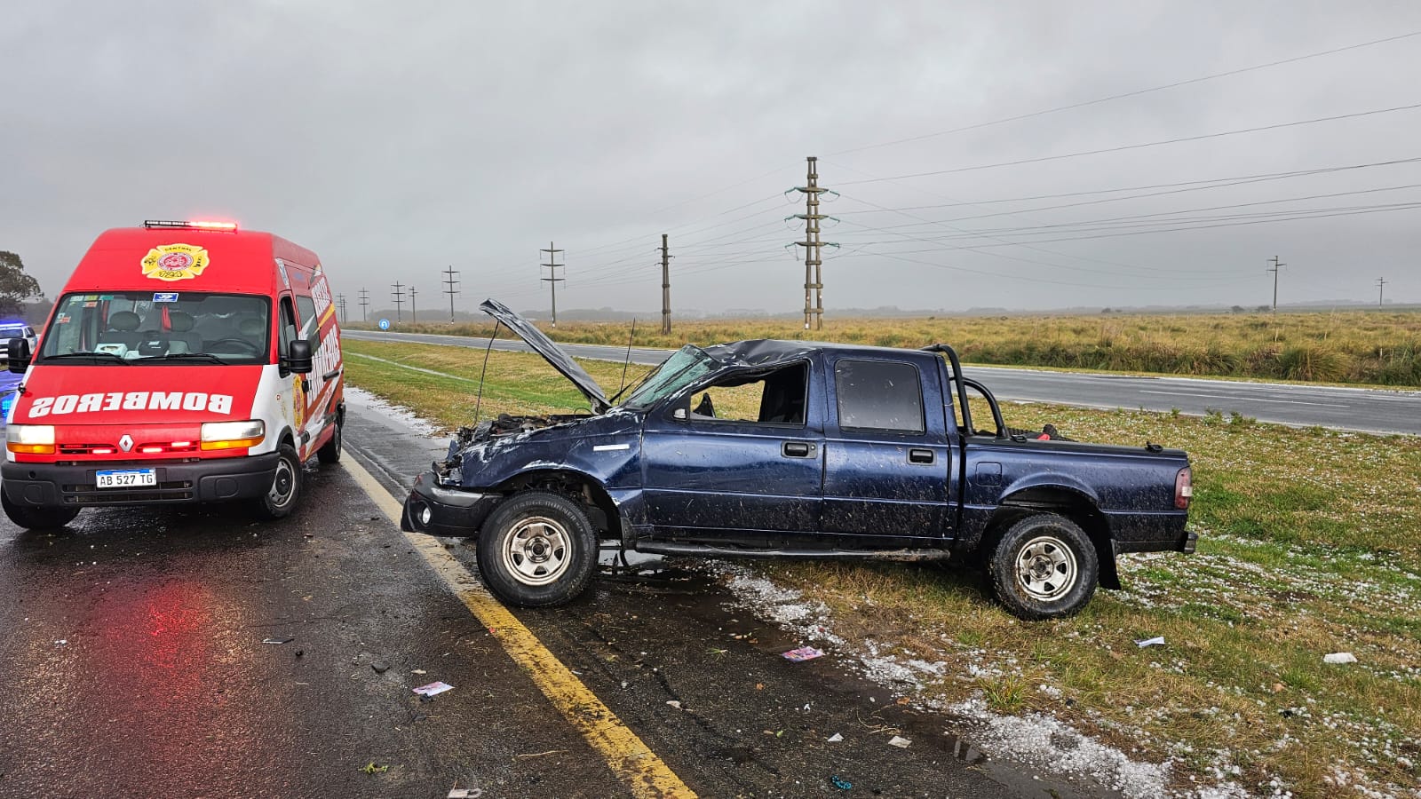 Esta tarde aproximadamente a las 15:30 horas, aparentemente por la caída de granizo, el conductor de una camioneta Ford Ranger despistó a la altura del kilómetro 406 de la Ruta 11. La maniobra terminó con el vuelco del vehículo. Herido, pero no de gravedad, el hombre fue trasladado al hospital municipal.