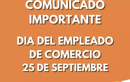 La Cámara Unión de Comercio, Industria y Turismo de Villa Gesell informa que, el día del empleado de comercio, se celebrará el lunes 25 de septiembre y, aunque los establecimientos no estarán obligados a cerrar, deberán acordar una forma de trabajo para ese día festivo.
