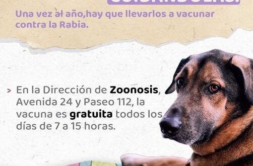 ¿Cómo podemos colaborar con la prevención? Vacunando a nuestras mascotas. En la Dirección de Zoonosis, Avenida 24 y Paseo 112, la vacuna es gratuita todos los días de 7 a 15 horas.