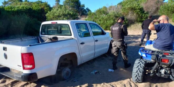 La camioneta fue encontrada en los médanos de la zona norte de Gesell desmantelada, por lo que se entiende que los delincuentes se trasladaron de sur a norte sin ningún problema y además tuvieron tiempo de sacarle ruedas y otros elementos.