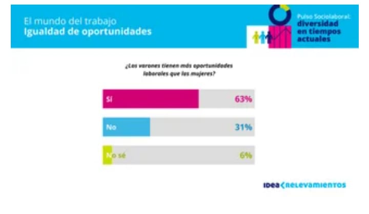 El 63% de los empleados de empresas en Argentina creen que los hombres tienen mayores oportunidades en el ámbito laboral en comparación con las mujeres. Además, 8 de cada 10 mujeres comparten esta percepción, mientras que sólo 4 de cada 10 hombres reconocen esa desigualdad.