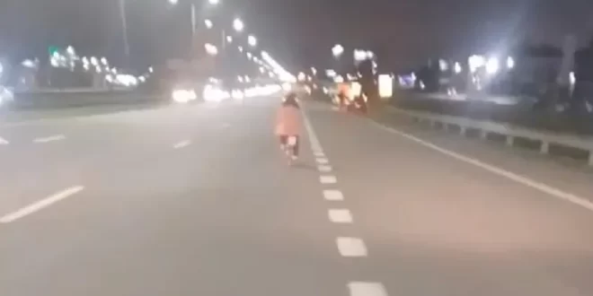 El impactante momento fue grabado por uno de los automovilistas que tuvo que reducir notablemente la velocidad para no atropellar a la menor y también para evitar que otros conductores pudieran atropellarla.