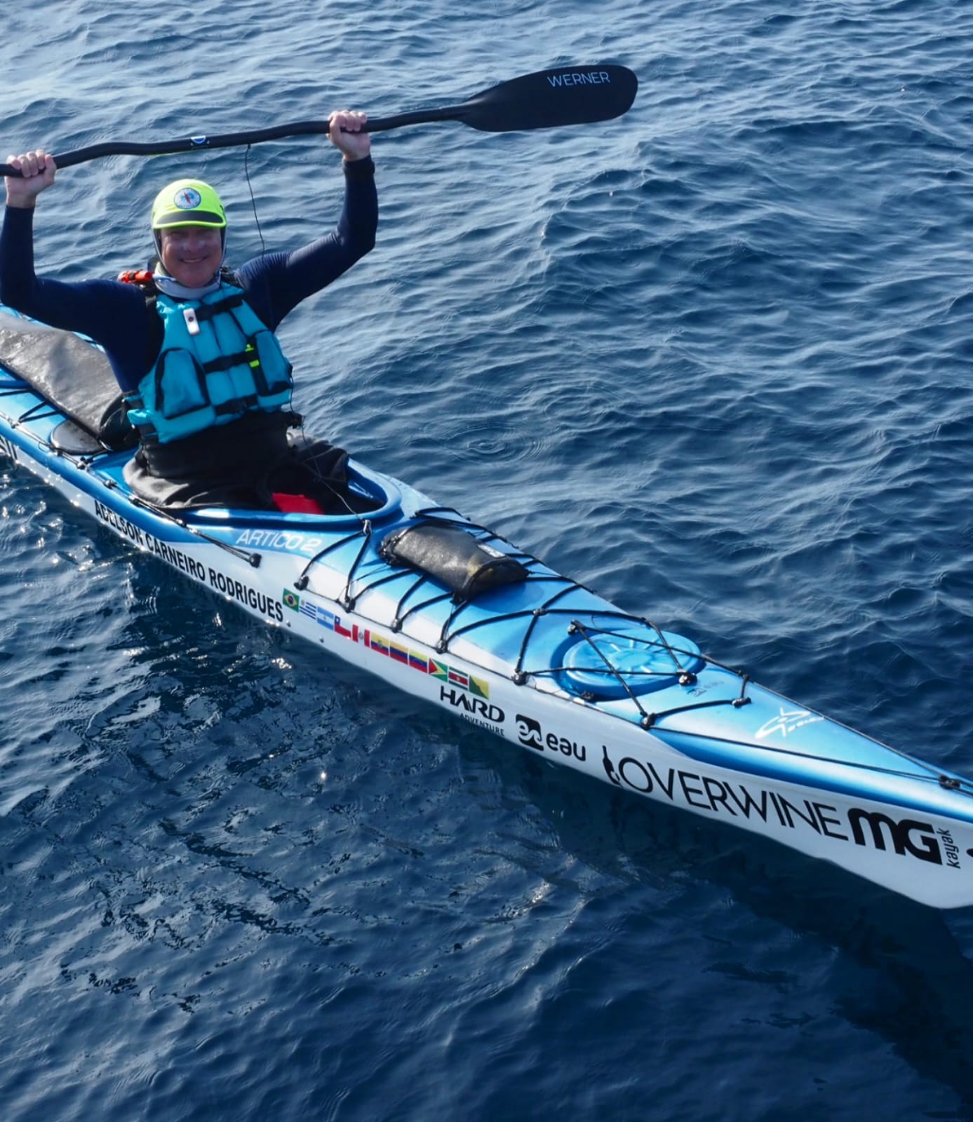 Solo con la utilización de un medio acuático que es su amigo inseparable (kayac), Adelson promedia un viaje que tiene y tendrá variables con adrenalina : corrientes cálidas, frías, oleaje, vientos y lluvias , culturas diversas y terrenos curiosos de difícil acceso. A sus 63 años el asegura que “soy un privilegiado de dios en tiempo y lugar, conviviendo con la bella naturaleza y el medio ambiente “.