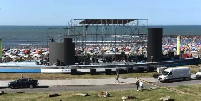 En el Paseo Hermitage terminó de montarse en las últimas horas el imponente escenario sobre el cual se desarrollará hoy a todas luces el gran recital gratuito para celebrar los 151 años de Mar del Plata.
