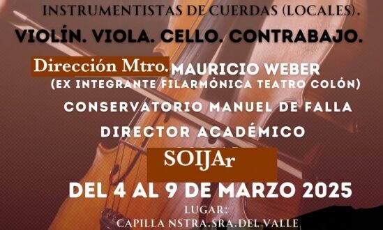 El seminario está destinado a estudiantes avanzados de violín, viola, violonchelo y contrabajo. Estará dirigido por Mauricio Weber, exintegrante de la Filarmónica del Teatro Colón y director académico del SOIJAr. El evento se desarrollará del 4 al 9 de marzo.