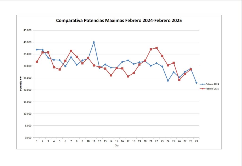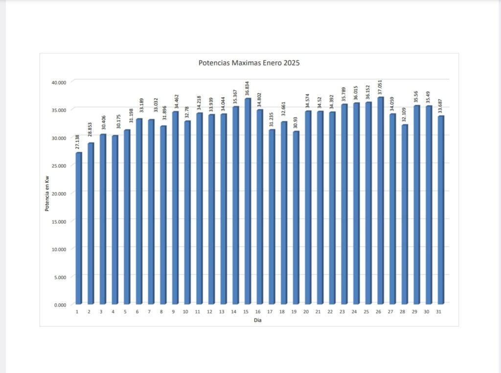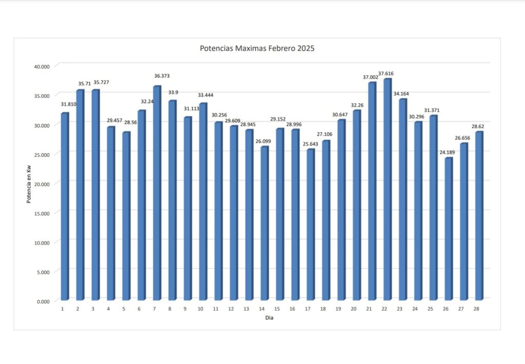 El pico máximo de consumo de este año se dio el día 22 de Febrero con 37.616 KW, en tanto que en mes de enero el consumo máximo se dio el día 26 con 37.051 KW. Este consumo no alcanza el pico máximo histórico alcanzado el 13 de enero del 2022 con 41,84 MW. Recordando que la potencia instalada para el Partido de Villa Gesell es de 45 MW.