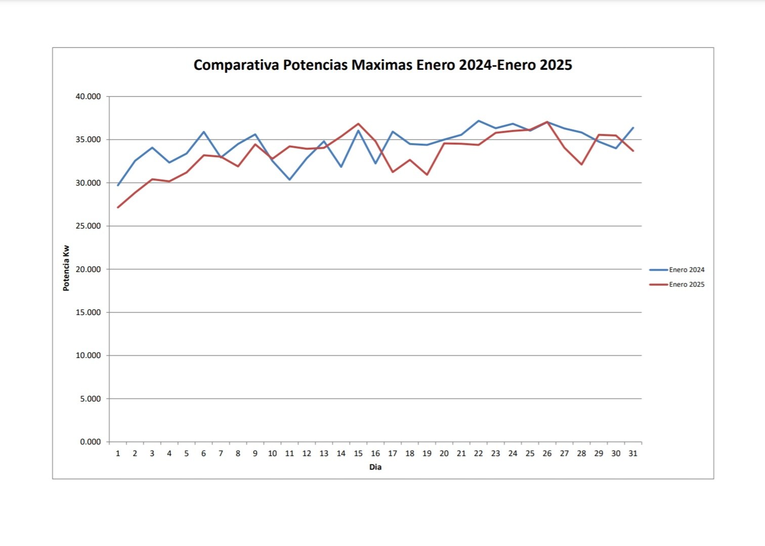 El pico máximo de consumo de este año se dio el día 22 de Febrero con 37.616 KW, en tanto que en mes de enero el consumo máximo se dio el día 26 con 37.051 KW. Este consumo no alcanza el pico máximo histórico alcanzado el 13 de enero del 2022 con 41,84 MW. Recordando que la potencia instalada para el Partido de Villa Gesell es de 45 MW.