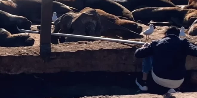 Este tipo de intervenciones son cada vez más comunes para él, quien se hizo conocido durante la pandemia al mostrar cómo los lobos marinos tomaban las calles vacías del Puerto. Desde entonces, su tarea se volvió rutinaria: recorrer la banquina, observar a los ejemplares y detectar signos de atrapamiento por residuos plásticos.