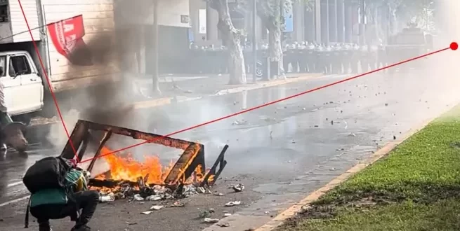 Imágenes de los medios de comunicación mostraron que el disparo del arma antidisturbios fue casi en línea recta y que la granada disparada desde donde avanzaba la Gendarmería impactó en la cabeza del fotógrafo, que estaba agachado haciendo una toma.