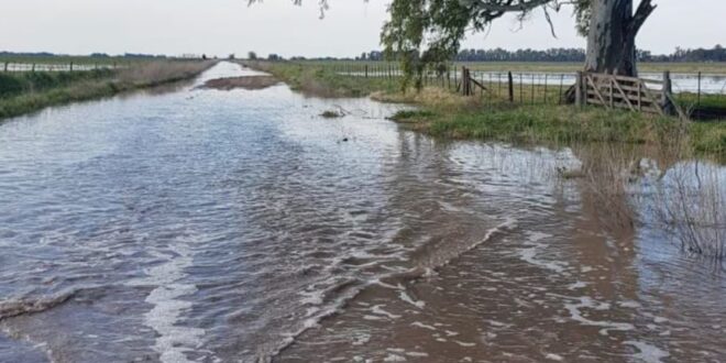 Las imágenes reflejan el impacto de las lluvias que azotan la región desde el sábado por la noche y que, según los registros oficiales, ya superan los 54 milímetros en el casco urbano. Los caminos rurales están prácticamente intransitables, lo que dificulta la actividad diaria de los productores, en particular de los tambos, que deben garantizar la recolección y traslado de la leche.