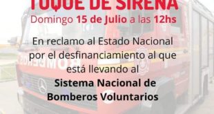 Como estaba pautado, hoy domingo a las 12 horas, el Destacamento Uno de Bomberos hizo sonar la sirena al igual que todos los cuarteles. Es una medida de protesta por la falta de pago y la reducción en el subsidio, denunciada por la Federación de Asociaciones de Bomberos Voluntarios de la Provincia de Buenos Aires. La sirena de los bomberos …