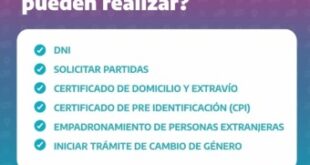 Serán tres jornadas en distintos puntos del Partido, donde se podrán realizar los siguientes trámites: DNI, solicitar partidas, certificado de domicilio y extravío, certificado de pre identificación (CPI), empadronamiento de personas extranjeras e iniciar trámite de cambio de género. El Registro Provincial de las Personas del Gobierno de la Provincia de Buenos Aires, en conjunto con la Dirección de Relaciones …