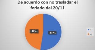 Hace unos días atrás, cuando estaba en duda si el feriado por el Día de la Soberanía se trasladaría o no, debido a que la votación del balotaje presidencial será el domingo 19, realizamos una encuesta consultando: «Estás de acuerdo con que no se traslade el feriado del 20 de noviembre, teniendo en cuenta que el domingo 19 es el …