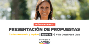 La Candidata a Intendente de Juntos por el Cambio presentará junto a sus equipos técnicos las propuestas de gobierno, para todos los vecinos que deseen acercarse, este miércoles 11 a las 19.30 en el salón del Golf Club. En una convocatoria abierta a todo público, este día miércoles Clarisa Armando realizará una presentación de todo el trabajo que han realizado …