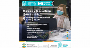 Se desarrollará el lunes 25, martes 26 y miércoles 27 de octubre en el Polideportivo Municipal, ubicado en Paseo 110 y Avenida 10, de 9 a 15 horas, y se darán 400 turnos diarios. El programa de documentación del Ministerio de Gobierno de la Provincia de Buenos Aires tiene como objetivo garantizar la identidad de las y los geselinos para …
