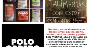 Mediante la pregunta: Barrera, vos te alimentas con esto? los integrantes del Polo Obrero y candidatos del Frente de Izquierda Trabajadores Unidad, simbolizan los reclamos que vienen realizando en distintas oportunidades y el próximo viernes 15 de octubre a las 12 horas reforzarán en la puerta de la municipalidad de Villa Gesell mediante una manifestación. Asistencia alimentaria completa en comedores …
