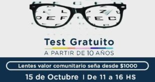 El equipo de #CREAR invita a una nueva jornada de salud visual, el viernes 15 de octubre. Podes hacer la consulta y test con oftalmólogos de forma gratuita y también comprar los lentes recetados a un valor comunitario. Niños desde los 10 años. Se realizará en el local en Boulevard n°2245 y 122 desde las 11 hasta las 16 horas. …