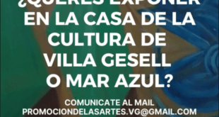 La Dirección de Promoción de las Artes informa a todas y todos los artistas visuales que hay disponibilidad de lugares para exponer en las galerías de la Casa de la Cultura de Villa Gesell o en la Casa de la Cultura de Mar Azul. Si querés exponer tus cuadros, fotografías, comunicate a dicha área, perteneciente a la Secretaría de Cultura, …