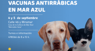El 3 y 4 de septiembre, el equipo municipal llevará adelante nuevas jornadas de esterilizaciones y vacunas antirrábicas en la localidad de Mar Azul. La actividad se desarrollará en la Casa de la Cultura de Mar Azul “Mercedes Sosa”. En ese contexto, las y los interesados en que sus mascotas reciban este tipo de atención veterinaria deberán solicitar su turno …