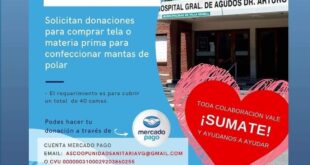Un grupo de vecinos están junto a la Cooperadora del Hospital Municipal realizando una colecta para poder confeccionar mantas para un total de 40 camas y sus recambios, también se aceptan donaciones de mantas en polar. «Somos un pequeño grupo de vecinos que decidimos realizar esta ACCIÓN SOLIDARIA, La única bandera que levantamos es la de hacer algo por y …