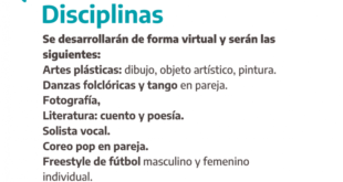 La Casa de los Abuelos convoca a los adultos mayores a inscribirse en los Juegos Bonaerenses. La inscripción estará abierta hasta el 31 de mayo. Conocé las disciplinas en la nota completa: Las disciplinas para adultos mayores se desarrollarán de forma virtual y serán las siguientes: artes plásticas (dibujo, objeto artístico, pintura), danzas folclóricas y tango (en pareja), fotografía, literatura …