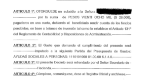 La suma se desprende de los decretos publicados en el boletín oficial con fecha 12 de mayo y bajo el número 1284 y con fecha 8 de abril con el número 1279. El concepto por el que el intendente aprueba la entrega de dinero a vecinos se denomina «ayuda social a personas». La cantidad de subsidios otorgados por la municipalidad …