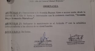 El lunes próximo se tratará en el Concejo Deliberante el proyecto impulsado por el concejal oficialista Sergio Coronel, que busca cambiarle la denominación a la arteria principal del acceso a la ciudad, Avenida Buenos Aires, para hacerle honor a Maradona. La Comisión de Obras del HCD le dio despacho a un proyecto de Ordenanza que busca renombrar a la Avenida …