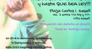 En Villa Gesell, como un muchas ciudades del país, habrá una vigilia para acompañar la votación en Diputados por el aborto legal. Se hará el jueves 10 de diciembre a partir de las 13 horas en la Plaza Carlos Gesell ubicada en Avenida 3 entre Paseo 11o bis y 111. Convocan Lxs bartolinas colectivo transfeminista y Manos a la otra …