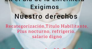 La convocatoria que se realiza por redes sociales, invita a todo el personal de enfermería, de salud, funcionarios y vecinos en general a la manifestación que tendrá lugar en la Plaza Primera Junta a partir de mañana 20 de noviembre a las 19 horas. Pese a haber tenido una reunión con el intendente en el día de ayer, en la …