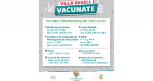La campaña de vacunación contra Covid-19 continúa de forma presencial y telefónica para COVID-19. La municipalidad informa que quienes necesitan asesorarse o inscribirse al plan de vacunación público, gratuito y optativo contra COVID-19, se pueden acercar o llamar a diferentes lugares. Se reafirma tener en cuenta la necesidad de un teléfono de contacto y un mail propio de algún familiar …