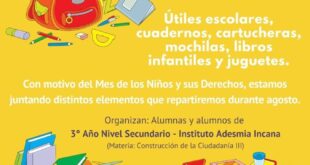 ÚtilESDar se llevará a cabo del 15 de julio al 15 de agosto inclusive a cargo de las alumnas y los alumnos de 3° año nivel secundario del colegio ubicado en Paseo 125 y Avenida 13, con motivo del Mes de los Niños y sus Derechos. La idea es juntar distintos elementos que repartirán durante agosto: Útiles escolares, cuadernos, cartucheras, …
