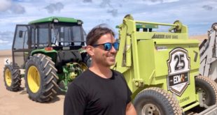 Es invierno y la Barber Surf Rake no para. El último 20 de junio, feriado por el Día de la Bandera, limpió desde 118 hasta el norte de la ciudad. Mirá el video y enterate cómo funciona esta máquina que es arrastrada por un tractor y a su paso, no deja basura por levantar.