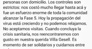 Es parte del mensaje del intendente Gustavo Barrera en las redes sociales, advirtiendo que Villa Gesell está cerrada, al igual que en toda la provincia solo se permite el ingreso a personas con domicilio. «Los controles son estrictos, nos costó mucho llegar hasta acá», escribió el mandatario. El mensaje de Gustavo Barrera «Somos una Ciudad que vive del Turismo. Nunca …