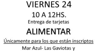 Será este viernes 24 de abril de 10 a 12 horas en la Casa de la Cultura Mercedes Sosa ubicada en Miramar y 46. Únicamente para quienes estén inscriptos y vivan en las localidades de Mar de las Pampas, Las Gaviotas y Mar Azul.