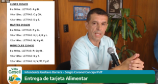 Lo confirmó el concejal del Frente de Todos, Sergio Coronel, esta mañana en la transmisión diaria que hace el intendente. Se hará en el Polideportivo, el horario de entrega será de 8 a 14 horas y se dispuso un cronograma de franjas horarias para que concurran los beneficiarios según la letra de comienzo del apellido. Las tarjetas, que son 1423, …