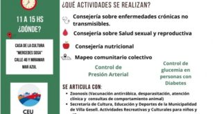 La jornada tiene como objetivo que la comunidad pueda recibir atención e información sobre diversas dependencias de la comuna. En esta oportunidad, contará con la Escuela Superior de Medicina de la Universidad Nacional de Mar del Plata, que visitará la Casa de la Cultura de Mar Azul “Mercedes Sosa”. Se instalará una Carpa Promover Salud en colaboración con la Dirección …