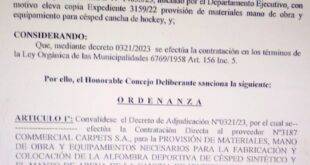 «Barrera se fue al pasto», dice una comunicación del partido vecinalista liderado por Javier Russo. La Unidad Vecinal Geselina puso en evidencia en una publicación realizada en sus redes en la tarde de hoy, que la suma de 37 millones de pesos presupuestada y aprobada por el Concejo Deliberante para poner el césped en la futura cancha de hockey es …